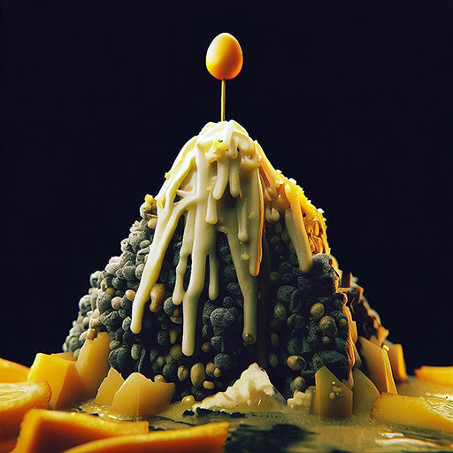 The deconstructed dessert with its abstract composition challenges the viewer to consider food as not just something to be consumed but as a work of art in its own right.